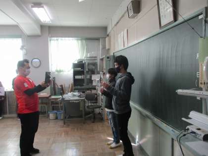 今日の集会は、美化委員会からの発表です。司会の集会委員会さんたちは放送室から、美化委員会の人たちは算数教室からmeetで配信です。