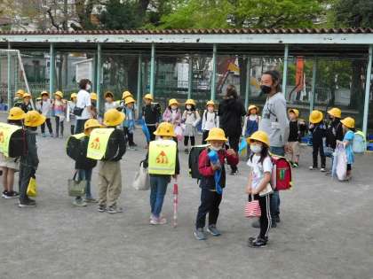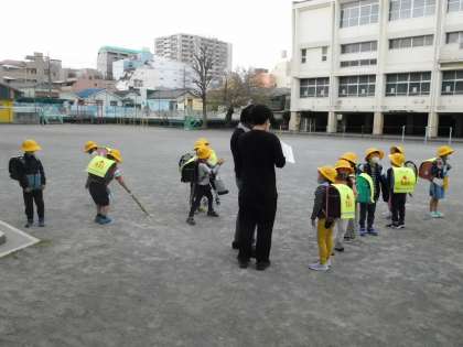 写真は4月7日(金)、入学式翌日の1年生下校風景です。学童の先生もお迎えに来てくれています。