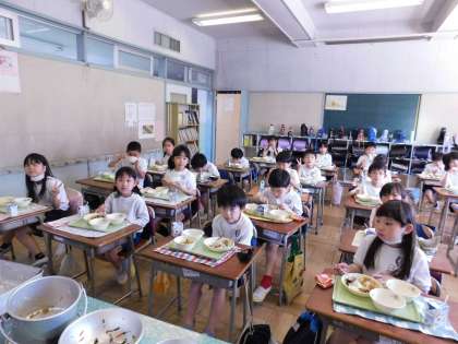 しっかりおかわりもしてくれています。どのクラスも食缶が空になっていました。えらいですね。