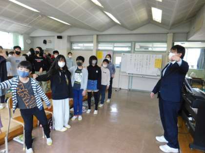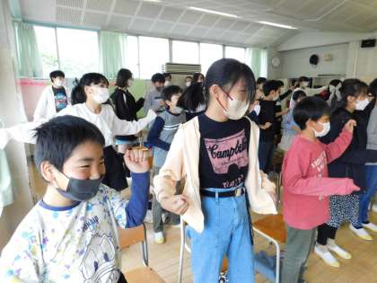4年1組の授業風景です。1組は音楽の授業でした。私も一緒に入って楽しませてもらいました。