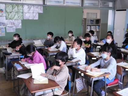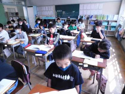 4年2組の授業風景です。国語の授業でした。有名な教材「しろいぼうし」を学習していました。学習プリントがしっかりと記入されていて感心しました。