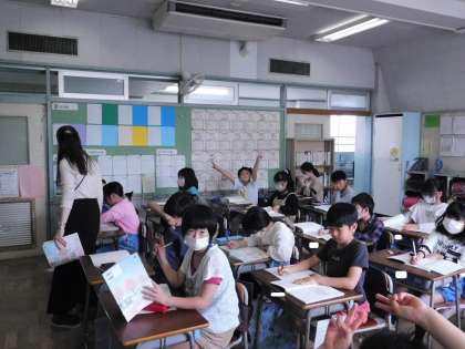 4年3組の授業風景です。3組も国語で「しろいぼうし」を学習していました。