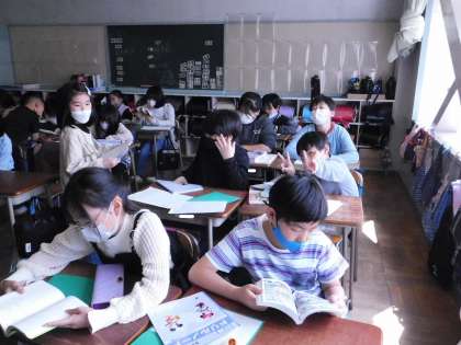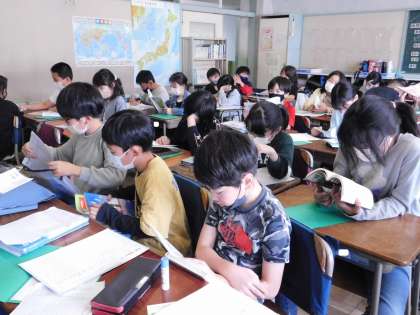 5年2組の授業風景です。ちょうどテストが終わった後で、読書やドリルを進めていました。お疲れ様。