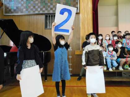 次はゲームです。4年生が3択クイズで盛り上げてくれました。