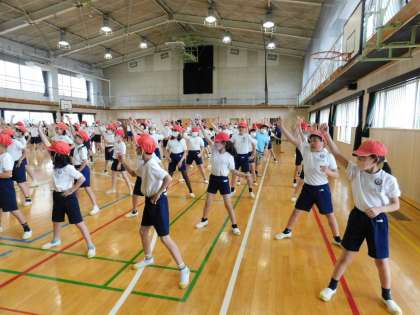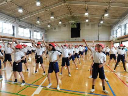 5・6年生が「ソーラン節」の合同練習をしていました。
