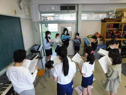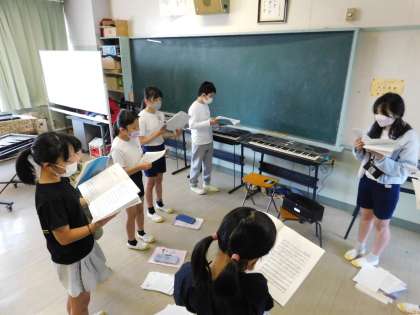 後半はソプラノとアルトに分かれ、「シーラカンスをとりにいこう」のパート練習をしていました。写真はアルトの子たちです。