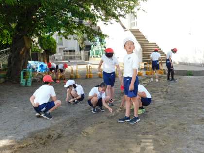 みんなで石拾い中です。