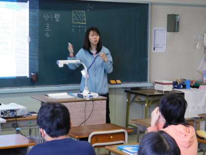 算数教室の授業風景です。「分数÷整数」の学習でした。