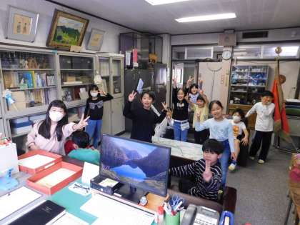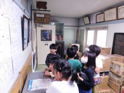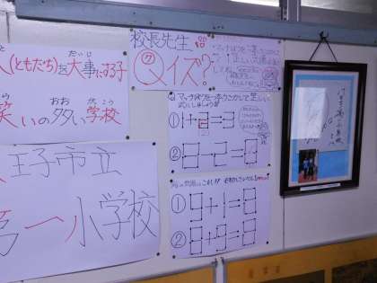 校長室前に、「校長クイズ」があります。全校朝会などで、子どもたちに出題しています。たくさんの子が問題を解きに集まってくれています。