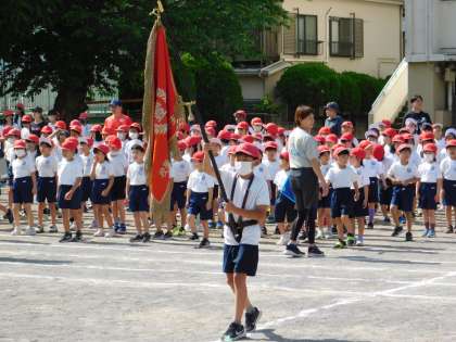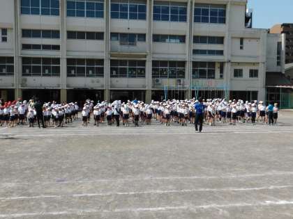 17日(水)運動会全校練習をしました。開会式の入場練習です。
