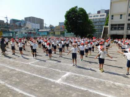 準備運動はラジオ体操第一です。