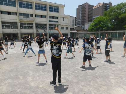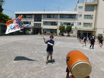お手製のTシャツが決まってます。大漁旗もなびいてます。