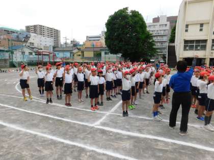 「運動会の歌」を赤も白も元気よく歌いました。