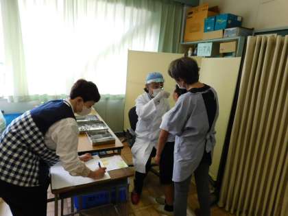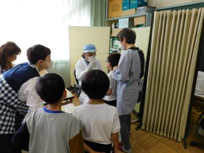 25日(木)、全学年で耳鼻科検診が行われました。受診の必要がある場合は、6月から始まるプール前に治療をお願いします。