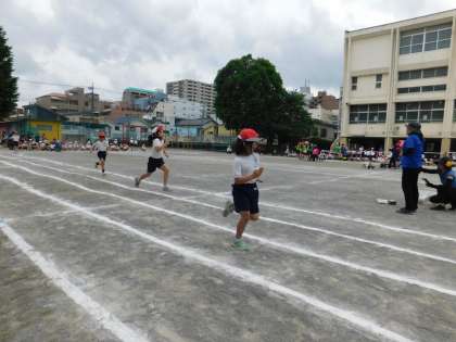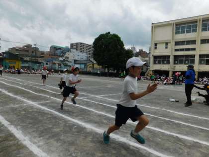3年生は80m走です。運動会では初めてカーブを走ります。