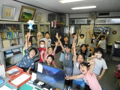 中休み、校庭が使えないこともあり、2年生を中心にかわいいお客様が校長室に遊びに来ました。