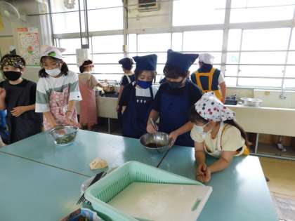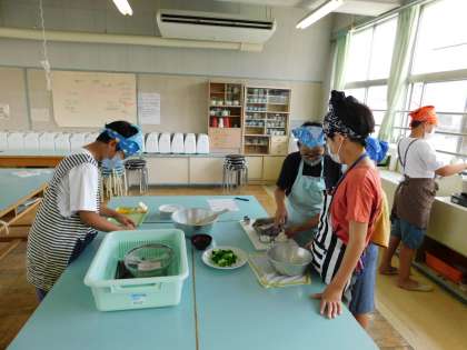 グループの子で切る・茹でる・ドレッシングを作るなど、分担して取り組んでいました。