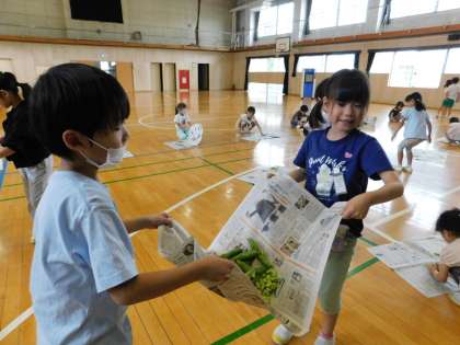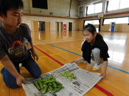 終わったグループから、前に持っていきます。ここも2人で協力して運びます。