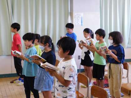 発声練習では、「夢の世界を」(7月の歌)2部合唱で歌っていました。