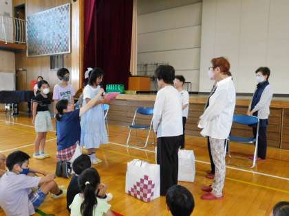 子どもたちも全員でお礼の言葉や拍手をした後、代表の子たちが書いてくれたお礼の文集を渡しました。