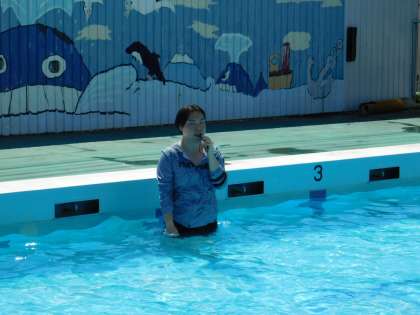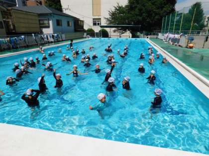 2年生がプールに入っています。来年から入る大プールを使ってます。