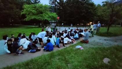 夕食も終わり、ナイトハイクです。雨も降らず良かったです。