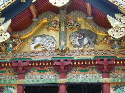 上神庫には狩野探幽が想像で描いたとされている想像の象の彫刻がありました。