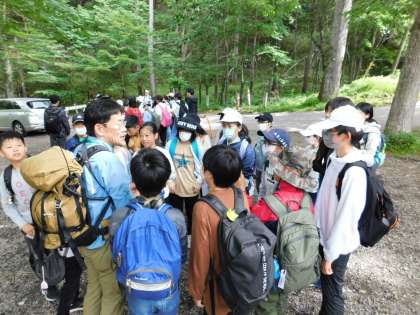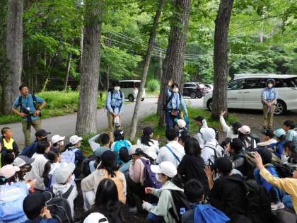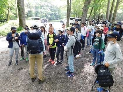 湯滝に沿って降りると、戦場ヶ原にはいる湯滝駐車場に出ます。ここで、ネイチャーガイドの方と合流しました。