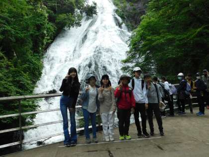 湯滝をバックに班写真です。