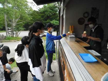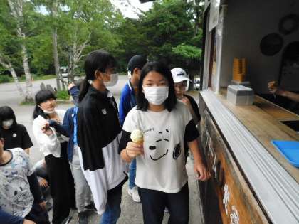 お昼の後はデザートのアイスクリームを食べました。