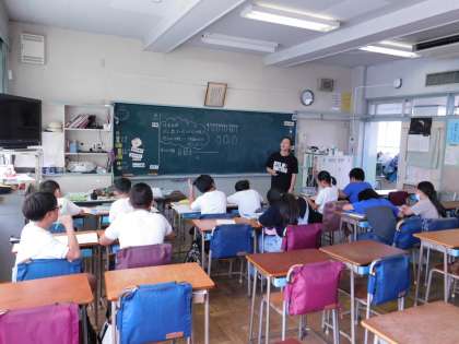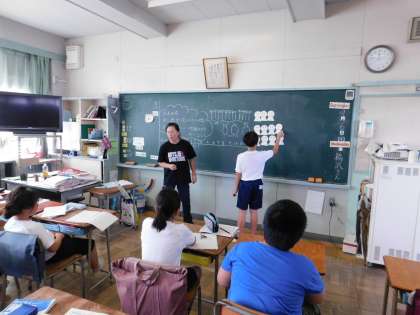 5年生の授業風景です。この時間は学年算数で、3教室に分かれての授業でした。
