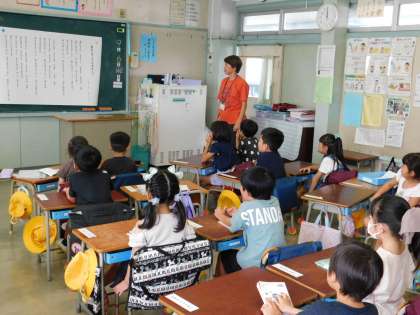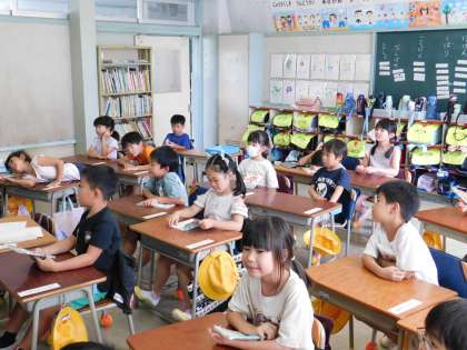 1年1組では、アートフェスティバルで歌う歌の練習をしていました。(多分ですが(笑))