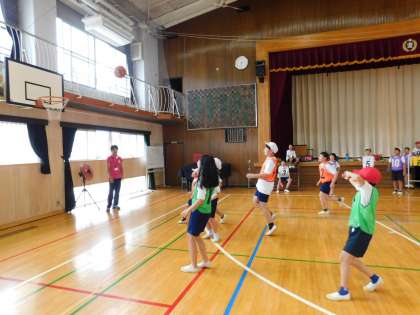 体育館半面では「バスケットボールクラブ」がゲームをしていました。アカツキジャパンのように熱戦を繰り広げていました。