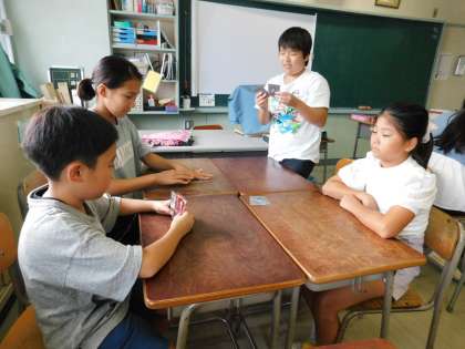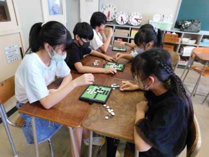 教室では「室内ゲームクラブ」が活動していました。カードゲームにオセロなど、楽しそうに取り組んでいました。
