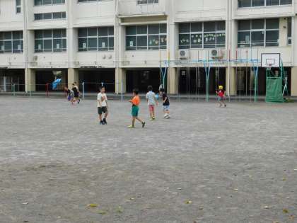 9月7日(木)の朝の校庭です。今日は暑さもそれほどでもなく、朝から元気に遊んでいますね。
