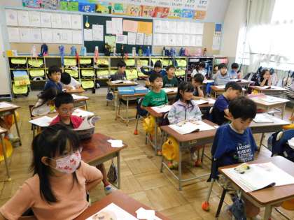 1年生の授業風景です。ちょうど休み時間になるところでした。