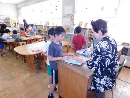 2年3組の授業風景です。ちょうど、図書室での読書の時間でした。