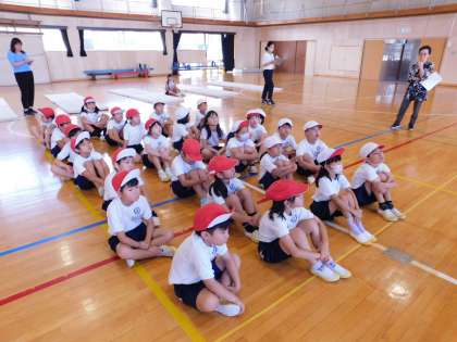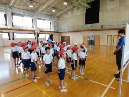 一昨日に続いて、昨日は2年3組の初任者の先生が巡回指導訪問のため、体育授業をしました。自分たちでマットも準備して、始まりを待っています。