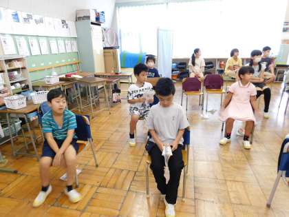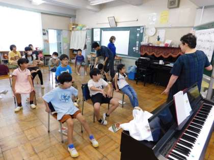 わかば学級をのぞくと、音楽の授業でした。アートフェスティバルで演奏する曲の導入場面でした。本番が楽しみです。