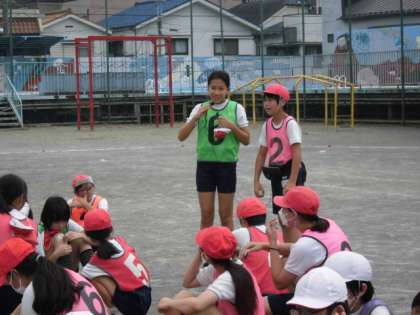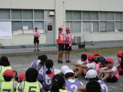 試合が終わり、閉会式です。ここでも実行委員の子たちが、頑張ってくれています。