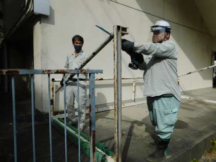 老朽化が進んで危険になっていたサッカーゴールを撤去していましたが、近隣の用務主事さんのお手伝いをもらいながら、サッカーゴールを解体しました。