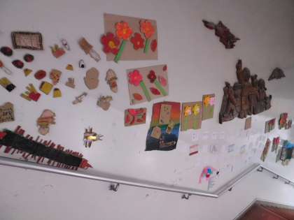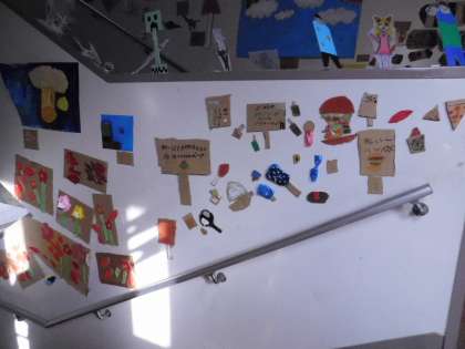 体育館までの壁に飾られた作品です。