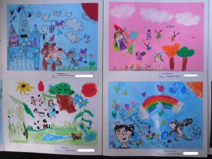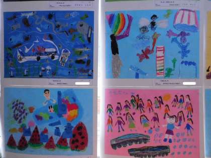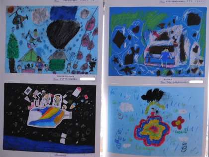 1年生の作品です。台紙の色も、様々ですね。子どもたちが選びました。