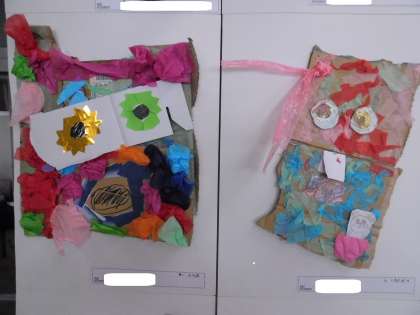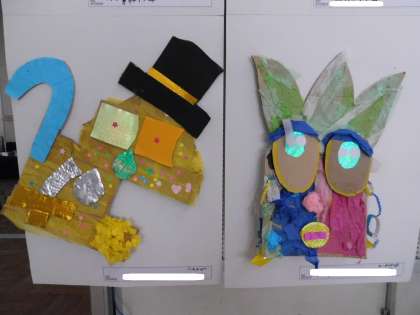わかば学級の作品は「ダンボールの顔」です。