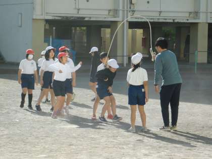 4年1組は大縄跳びをしていました。途切れず跳んでいて、感心しました。