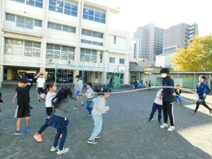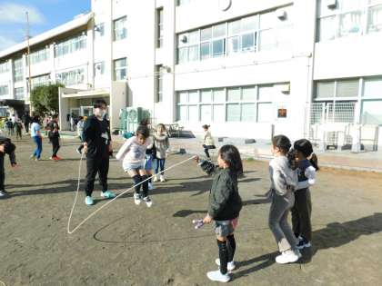 2年生も、先生が一緒に大繩に挑戦中です。