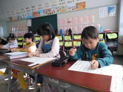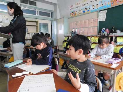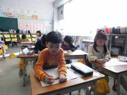 国語の「カタカナ」で書く言葉の学習をしました。プリントに書かれた文章の中から、カタカナで書いたほうが良い言葉を選び、書き直しています。