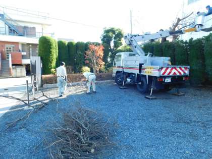お隣にあるお寺様に、本校の樹木がはみ出し、落葉等ご迷惑をおかけしていた樹木を伐採しました。