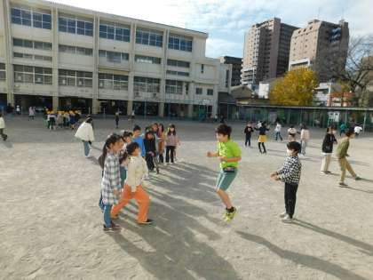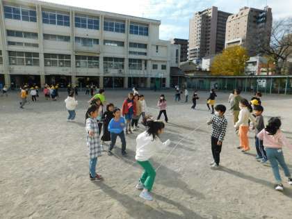 学年、学級も混ざって、みんなで大繩を楽しんでいました。