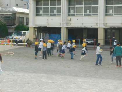 鉄棒のそばでは、1年生がたくさん遊んでいました。
